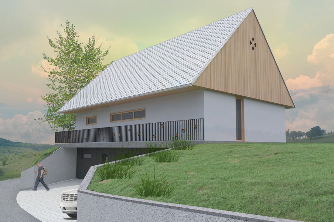 Še preden je mlada enodružinska hiša prišla v vas, so ji v oči padle izkušene vaške dame, ki že desetletja uživajo ugled vaških lepotic. Mladi hiši so bile, in so še vedno, velik vzor in želela si jim je biti podobna, zato se je po marsičem zgledovala po njih. Tradicija ji pomeni veliko, enako pripadnost lokalnemu okolju, kar pa seveda ne pomeni, da se je morala odreči sodobnim prijemom arhitekture, kot je npr. veliko panoramsko okno proti vrtu, moderna kuhinja ali toplotna črpalka.