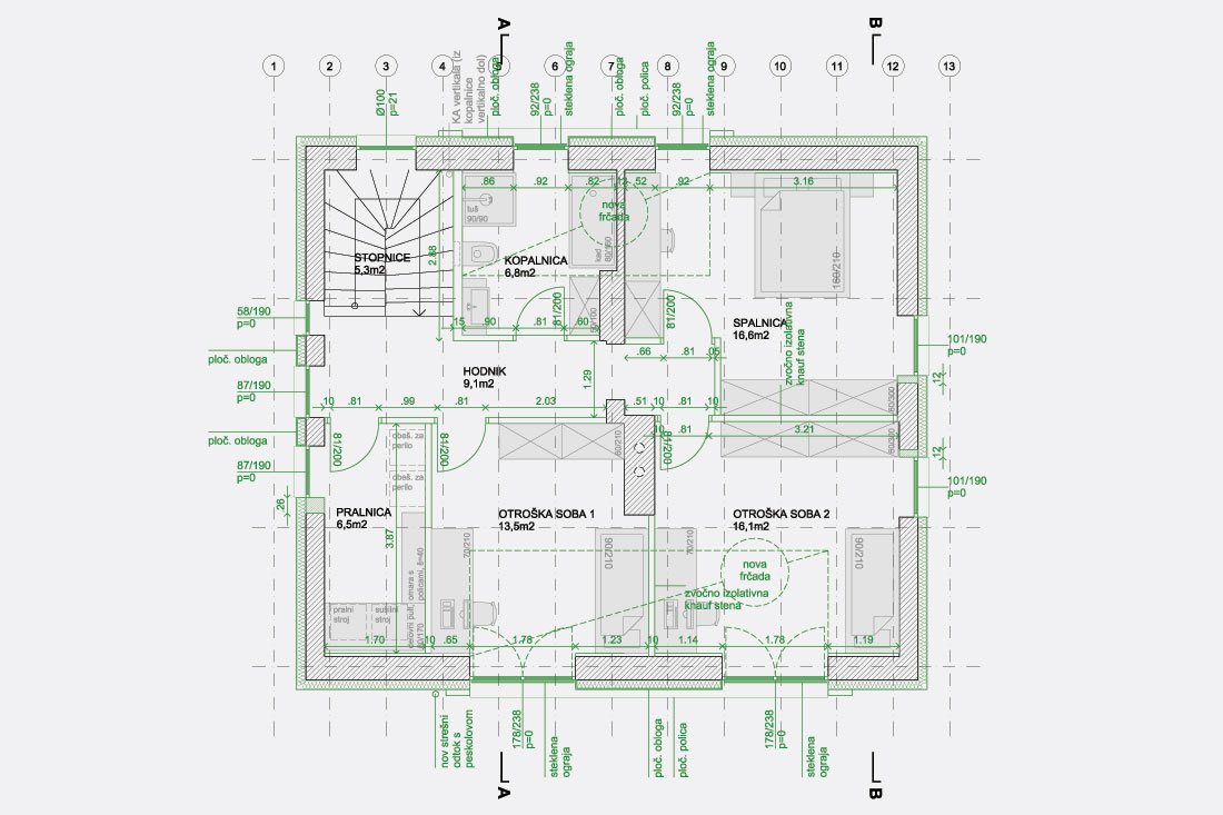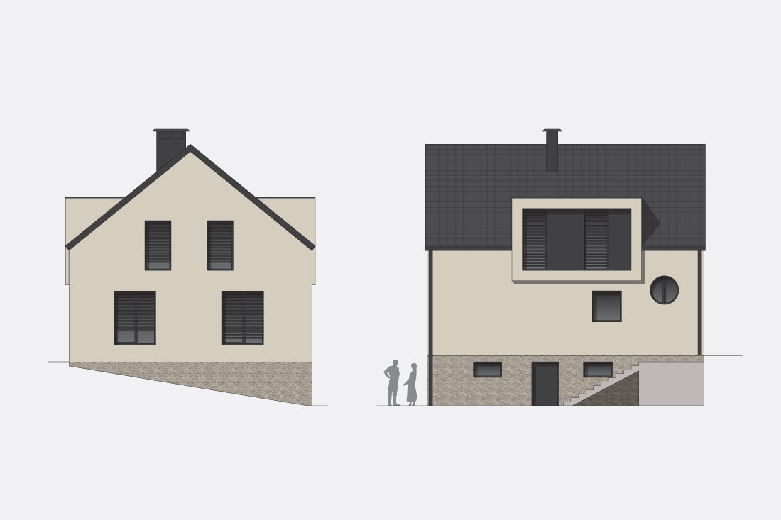 Celovita prenova starejše stanovanjske hiške z novim toplotnoizolativnim ovojem, streho, fasado, stavbnim pohištvom in popolno prenovo notranjih prostorov. Hiši dodamo še ščepec sodobnejšega pridiha – odstranimo napušč strehe, za boljši izkoristek prostorov mansarde dodamo frčade z večjimi okenskimi površinami, okenske površine povečamo tudi v pritličnih bivalnih prostorih.
