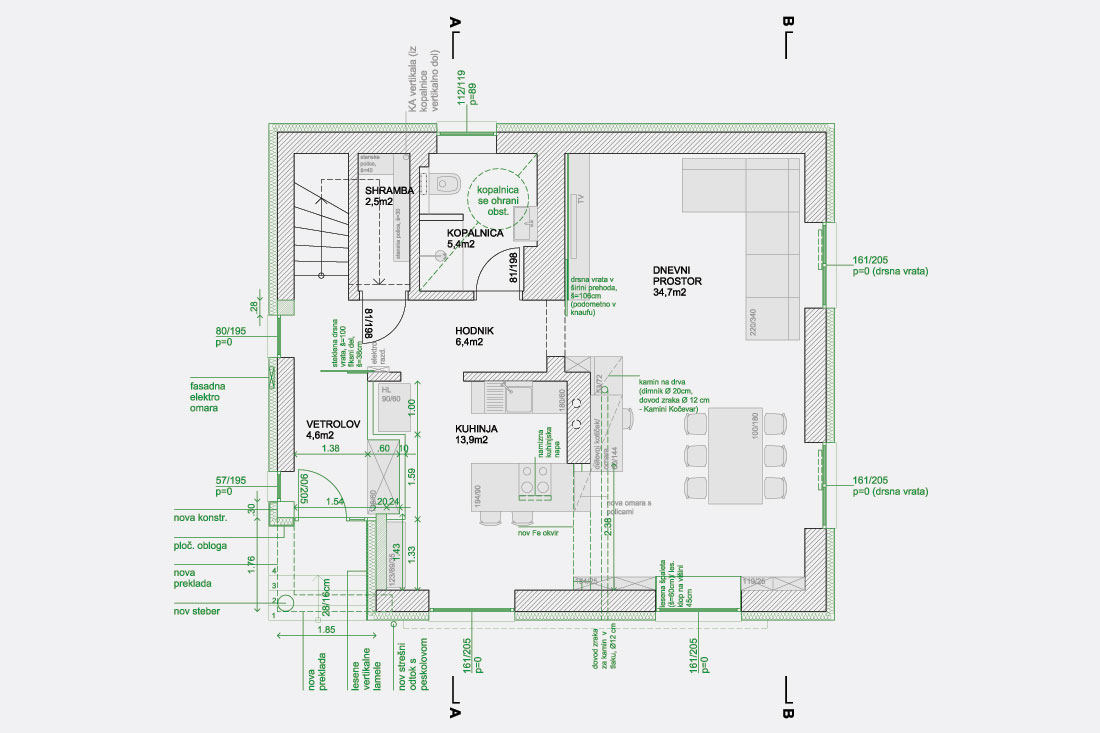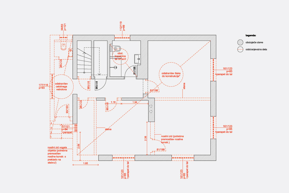 Gre za podaljšan idejni načrt, kot ga imenujemo mi in vsebuje jasno prikazane in kotirane nove arhitekturne elemente. Izdelan je tudi načrt odstranjevalnih del in shematski načrt končnih elektro elementov (luči, stikala, vtičnice, ipd.). Tovrstna oblika idejnega načrta lahko povsem zadošča pri izvedbi del. Vsekakor pa pred izvedbo del zelo priporočamo izdelavo popisa gradbeno-obrtniških del in nadzor nad gradnjo, ki omogoča transparentnost in kontrolo nad izvedbo.