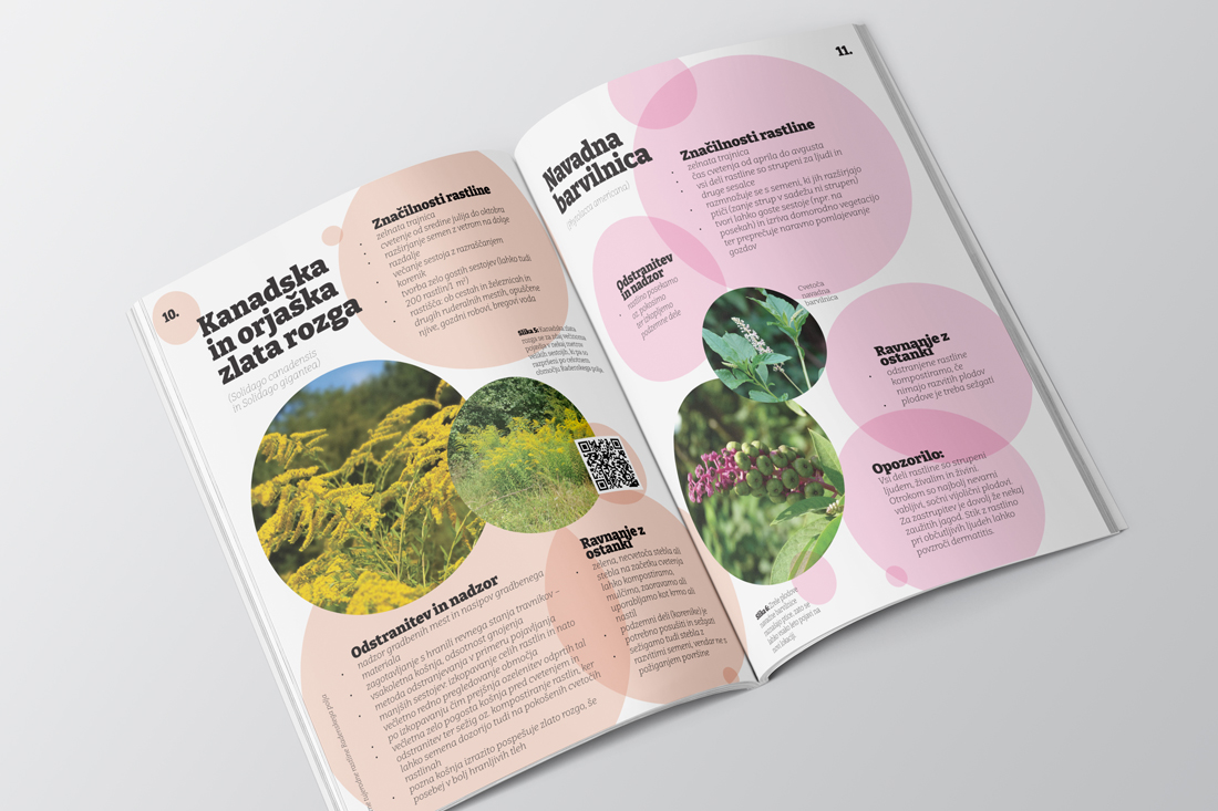Za Krajinski park Radensko polje smo oblikovali strokovno brošuro, ki celostno informira o invazivnih tujerodnih rastlinah, ki ogrožajo zavarovano območje narave na Radenskem polju.
