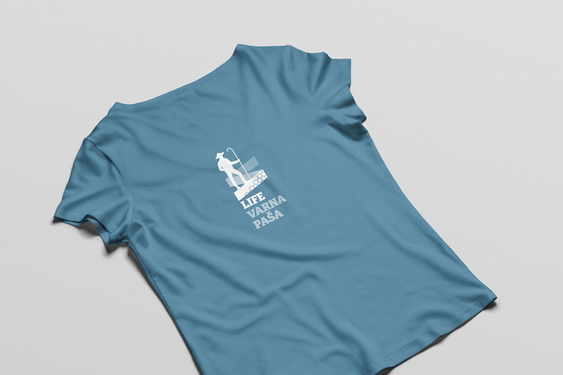 Motivu pastirja smo dodali abstraktnejši element, ki doda ozadje, globino in simbolizira varovalno ogrado, krajino, planine ter 3 sodelujoče sektorje pri projektu. Z motivom satovja smo na željo naročnika vključili tudi čebele, saj je varovanje čebelnjakov pomemben del projekta.