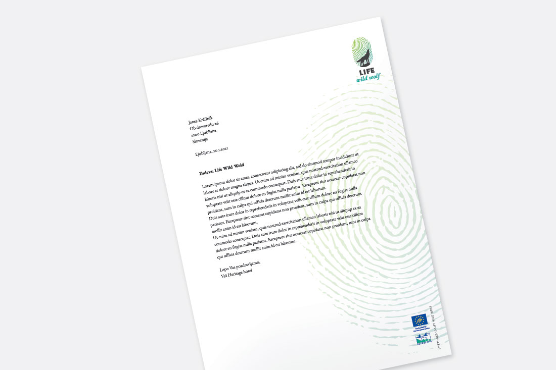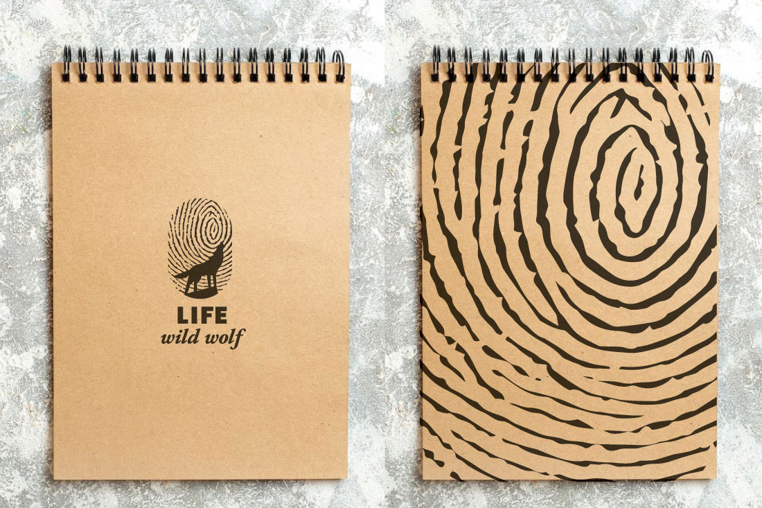 LIFE WILD WOLF je zelo obširen projekt, zajema številne aktivnosti različnih organizacij in poteka na območju 8 evropskih držav, katerih glavni cilj je ohraniti volka divjega in ljudi strpne, ter se z uporabo znanja in stroke izogniti oziroma omiliti konflikte. V znaku smo združili motiv volka na pečini (v divjini), človekov vpliv pa abstraktno predstavlja prstni odtis.