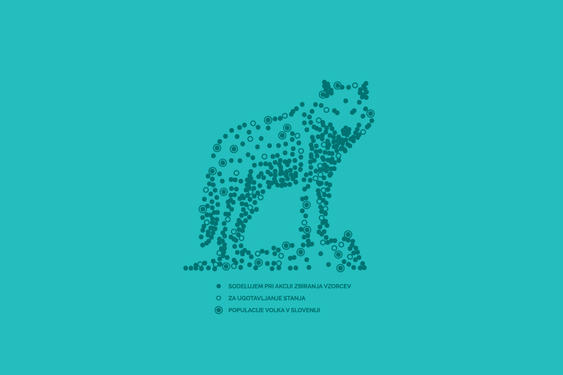 Za Zavod za Gozdove Slovenije smo pripravili motiv za majice namenjene sodelujočim v monitoringu volka. Gre za prostovoljce, ki so sodelovali pri zbiranju bioloških vzorcev živali in s tem prispevali k “celostni sliki” stanja populacije volka.