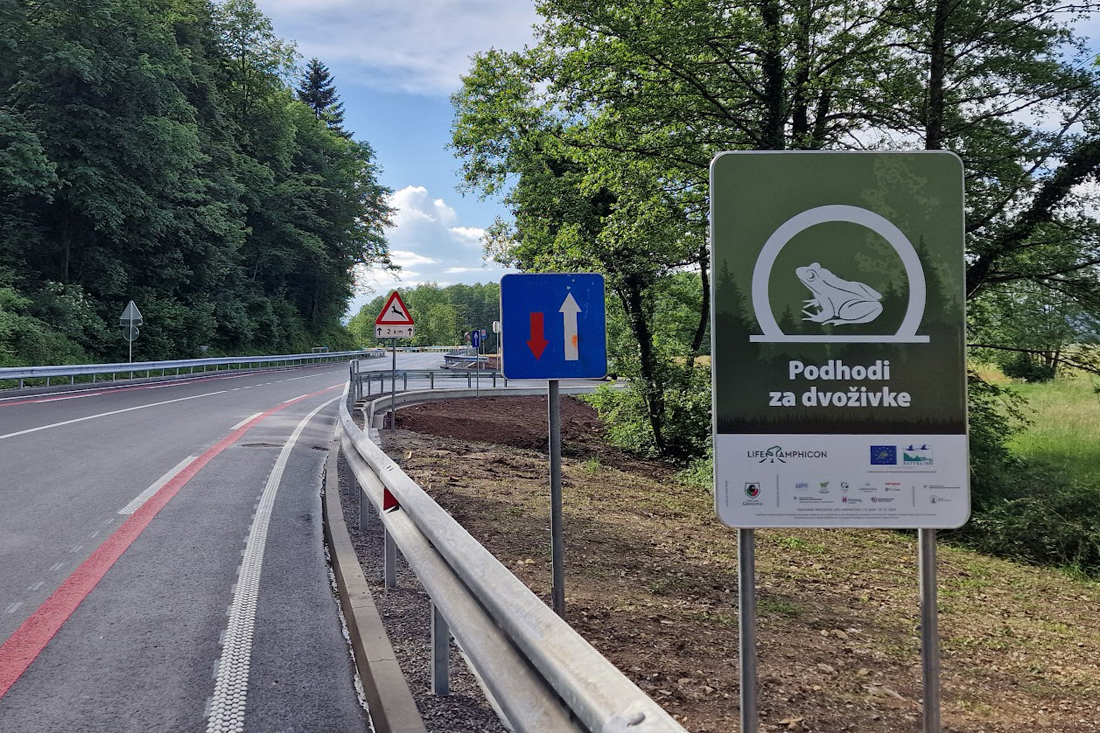 V sklopu projekta LIFE Amphicon smo oblikovali informativno prometno tablo za namen gradnje cestnih podhodov za dvoživke na projektnem odseku Podkraj.