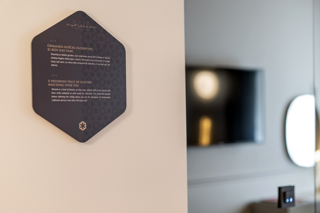 Za butični Hotel Heritage v Ljubljani smo poleg celostne grafične podobe pripravili tudi označevanje prostorov ter predstavitvene table stavbne dediščine. S tablami smo sledili celostni podobi hotela, a se hkrati z velikostjo, barvo in obliko prilagajali podobi interierja, da so table ravno dovolj opazne in funkcionalne.