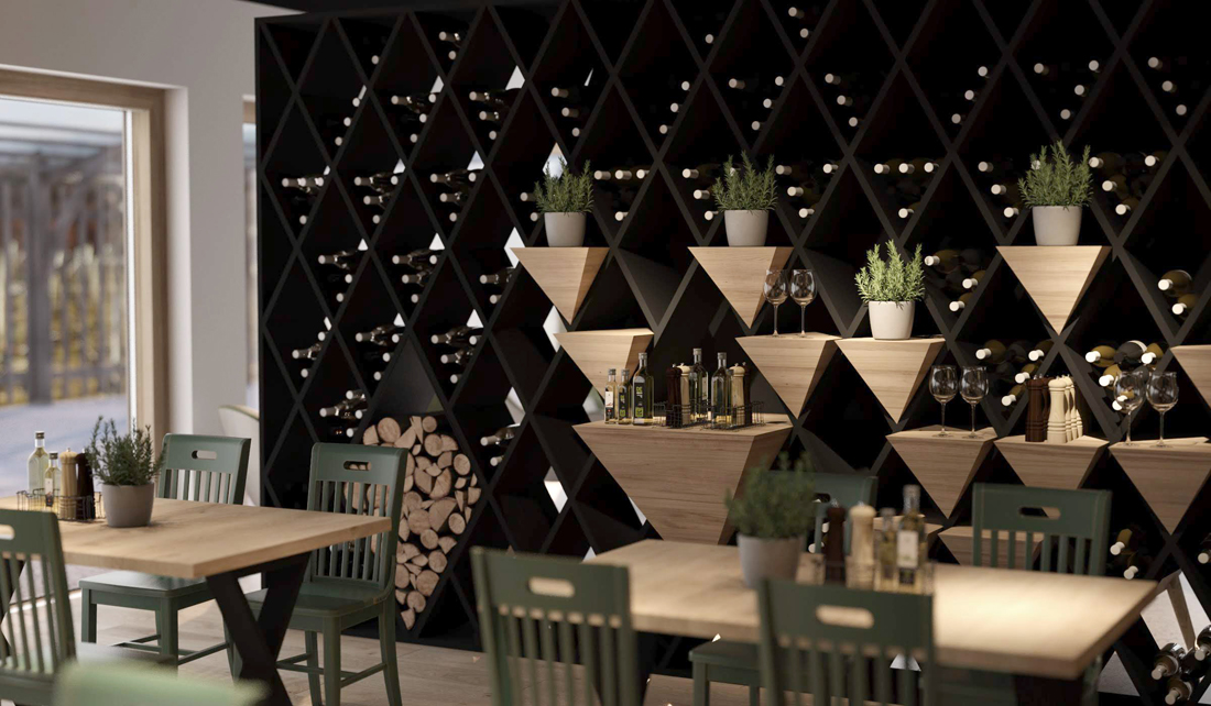 Za uspešnega slovenskega vinarja smo v sodelovanju z arhitekti Stereo Art pripravili idejno zasnovo interierja novega turističnega objekta z restavracijo, degustirnico in nastanitvami. Objekt bo na čudoviti lokaciji sredi vinorodne gričevnate dolenjske pokrajina streljaj od Novega mesta. Ambienti so na željo naročnika sodobni, a smo jim dodali tudi pridih domačnosti, vpletli vanje družinsko zgodbo in tradicijo, ter iskali navdih v različni simboliki vinarstva. V vhodni avli je krog iz plutovinastih zamaškov z znakom vinarstva Colnar, v restavraciji je glavni motiv vinska stena, restavracijski stoli so tisti, ki so »pri hiši« že desetletja, v degustirnici je vhodni portal nekdanjega kmečkega turizma. Brajda je nepogrešljiv element dolenjskih zidanic in kot rdeča nit povezuje vse prostore.